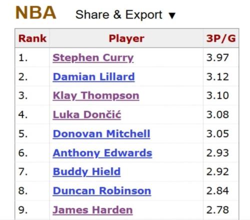 可以看到,榜单上排名第1的是库里,库里目前为止出战了1046场比赛,场均投进3.97个三分球,命中率是42.3%,当之无愧的NBA历史三分球第一人。但现在看来,假如克尼普尔能够保持健康,打出一个漫长的NBA生涯,那么他是有可能让库里让出榜单榜首位置的。